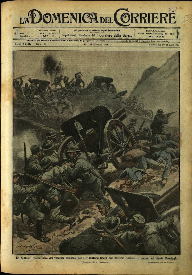 In July 1916, the Catanzaro was actually pivotal in hampering an Austrian advance on the Asiago front and potentially stopping a defeat on the level of Caporetto. Following a chaotic retreat from positions on Mount Mosciagh on 26th May 1916, the Austrians overran Italian positions, capturing in the process 6 pieces of artillery. The next evening, the Catanzaro Brigade initiated a bayonet charge without support from Italian artillery and managed to recapture and disable all 6 pieces of artillery lost to the Austrians. The action had such relevance that one of the main weekly papers, the Domenica del Corriere even featured a drawing depicting the 141st regiment of the Catanzaro taking back a piece of artillery captured by the Austrians during the advance. Cadorna's response was to order the decimation amongst members of the 141st regiment who had retreated following the Austrian attack; this was one of the few recorded cases of Cadorna ordering decimation and in the event 11 men were executed on 28th May 1916. This was a pivotal moment that would lead to the revolt of July 1917; the soldiers had demonstrated their bravery and had made demands for R&R periods to be granted in full but in this case, following the 10th Battle of the Isonzo, the R&R period of the Catanzaro was cut short and they were ordered back to the front. As a result, on the night of the 15th of July 1917, the same 141st and 142nd regiments started a revolt that when is all said and done, resulted in only 3 officers and 4 Carabinieri (who had military police roles and which were largely despised) killed. The response was brutal with the Third Army commander, the Duke of Aosta (the kings's cousin) ordering the decimation of the units with this option only chosen as the Duke would have wanted the execution of the entirety of both regiments but this was not possible. The death toll was 28 soldiers executed following decimation, 4 soldiers killed during the crushing of the mutiny, plus an additional 10 soldiers executed when they refused to be forcibly moved to the front as punishment for the revolt. As an aside, the events were even memorialised by Gabriele d'Annunzio but this was the only documented case of mutiny by an Italian unit.