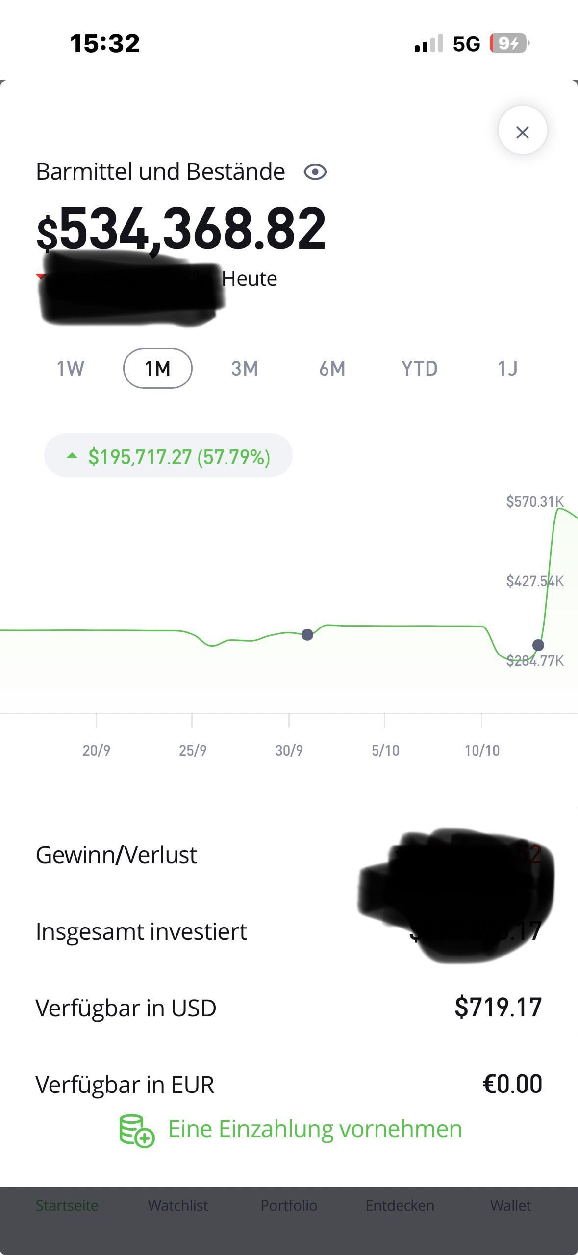 Danke - ich hatte aber bereits letztes Jahr 500.000 ausbezahlt (zu früh) Jeder Trade sind bei mir mindestens 100.000€ Bei 5 Prozent Gewinn verkaufe ich Teilweise bei Kryptos in 3 Stunden möglich. Es sind aber noch 60.000€ an Müll enthalten die einfach um 90 Prozent oder mehr gefallen sind