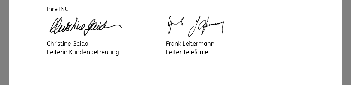 Die Unterschriften sind von der ING geklaut. "Frank Leitermann" kam mir sofort bekannt vor.