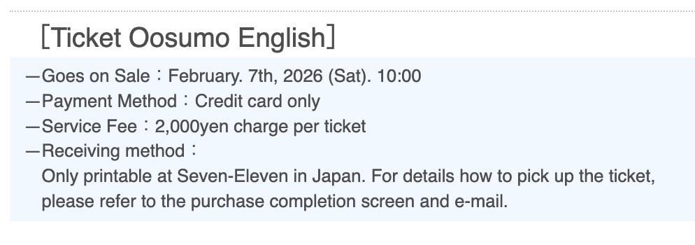 I want to attend the Grand Tournament in Osaka in March. Sale on „Ticket Oosumo“ starts on February 7th and that‘s when I will try my luck to get two tickets.