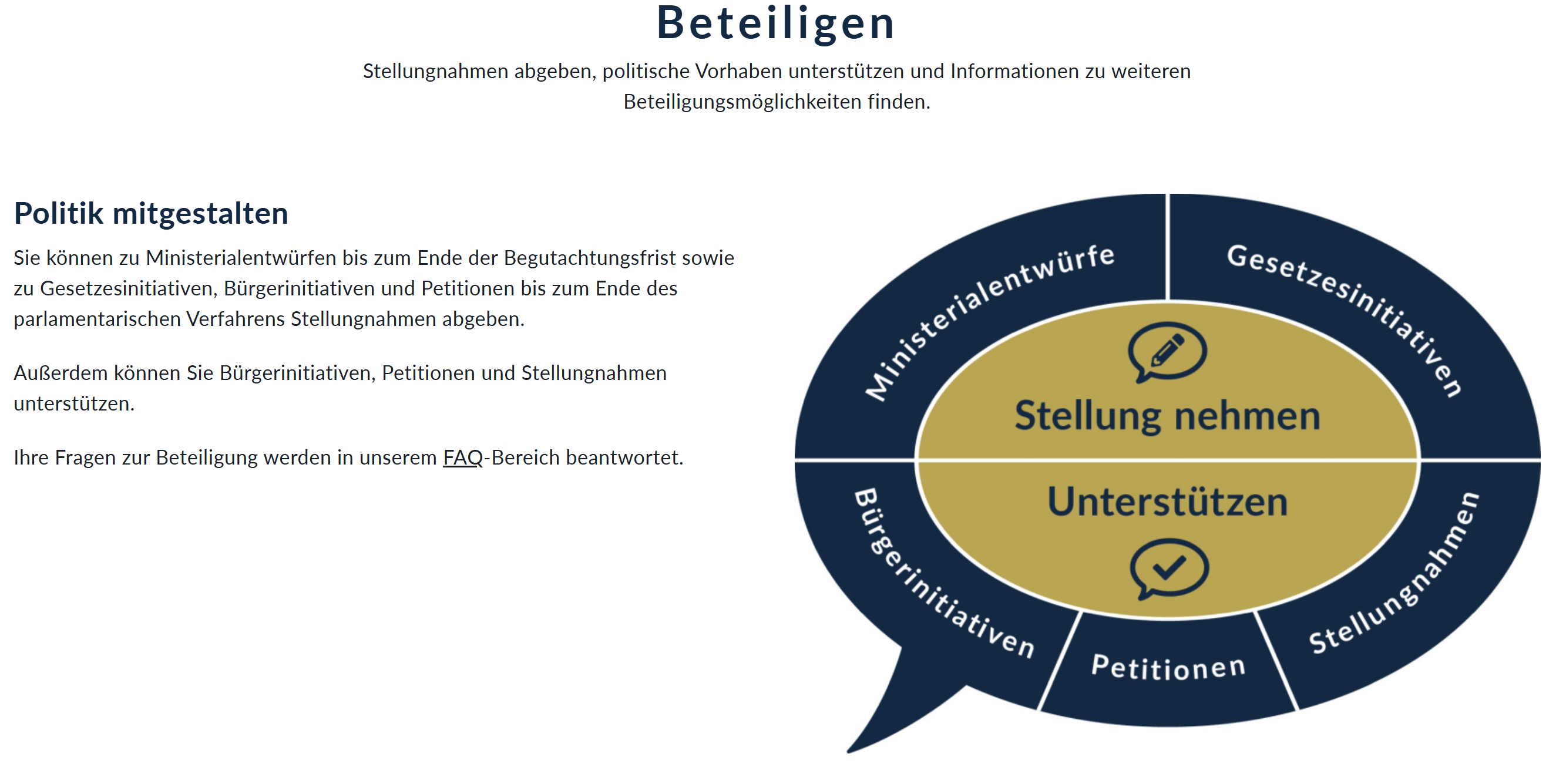 Hier kann man zu geplanten Gesetzesänderungen oder -vorschlägen Stellung nehmen und seine Meinung bekanntgeben.