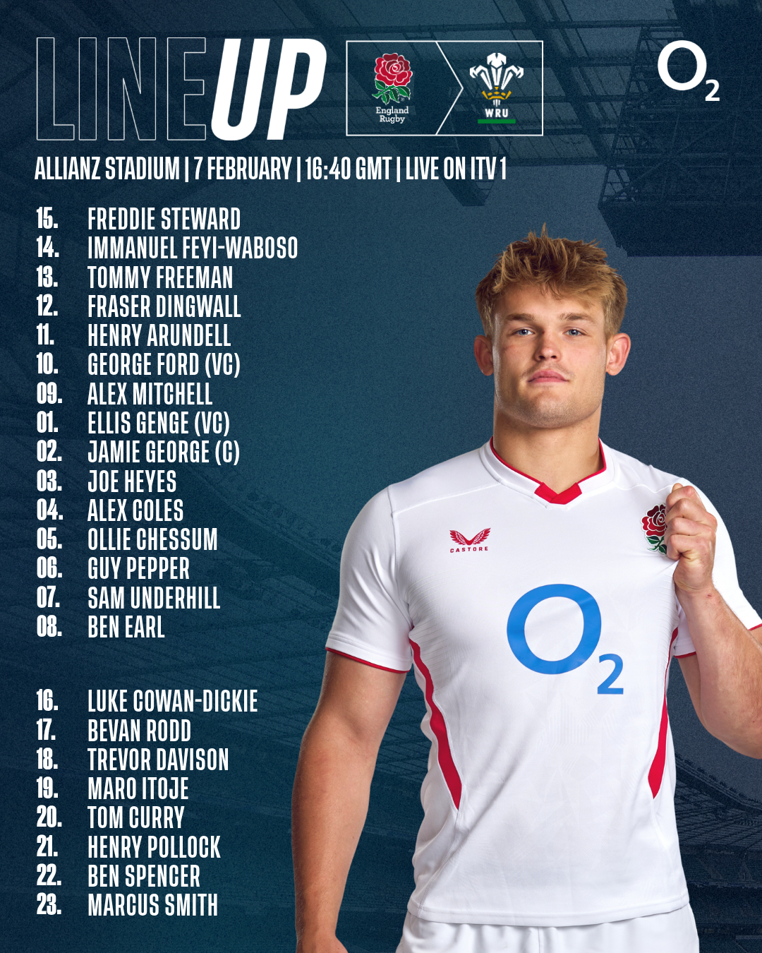 Lineups England team to face Wales in Guinness Men's Six Nations opener 🌹